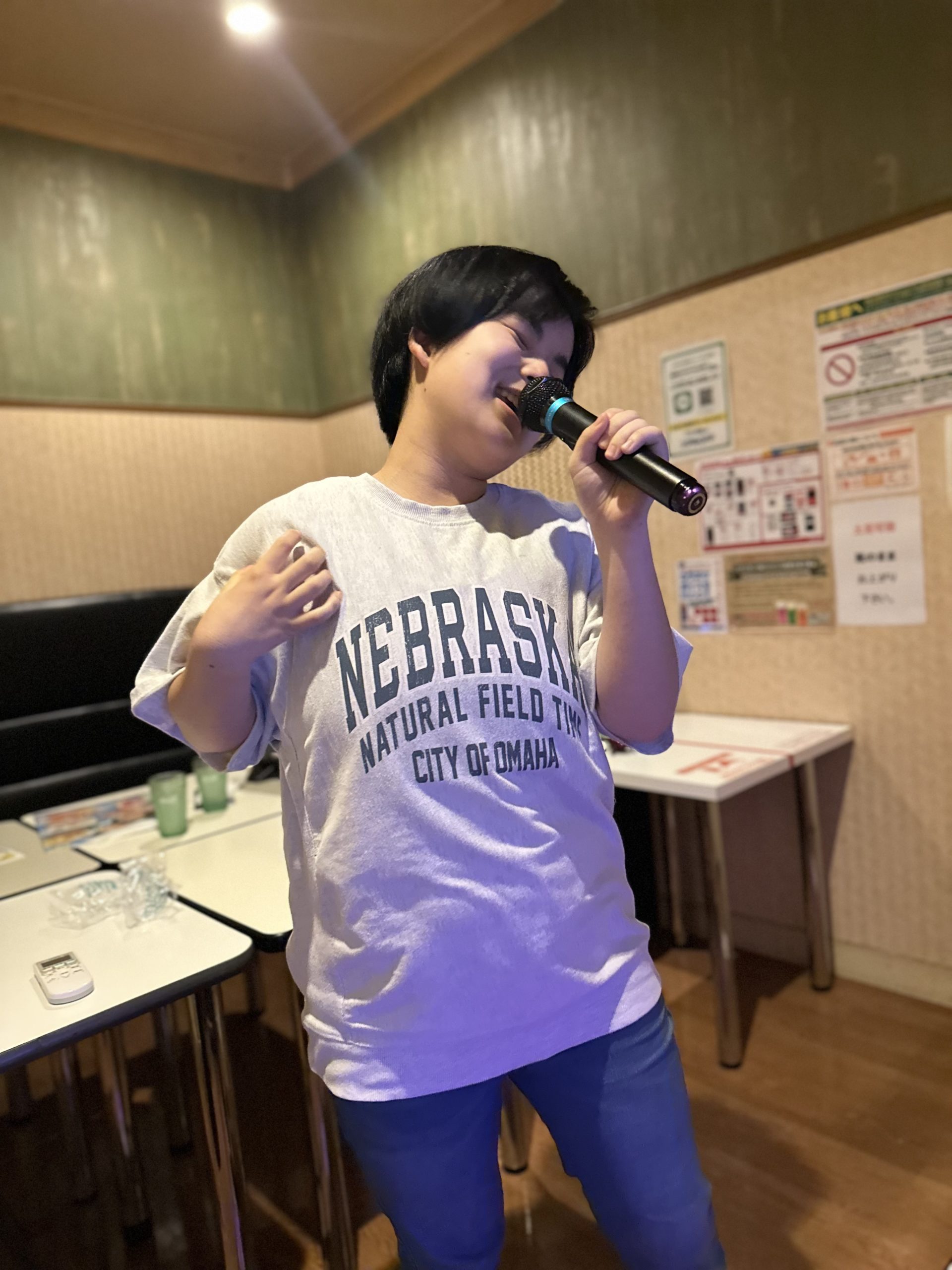 たくさんの曲の中から、歌いたい曲を探し出し、ノリノリで歌っていました😊